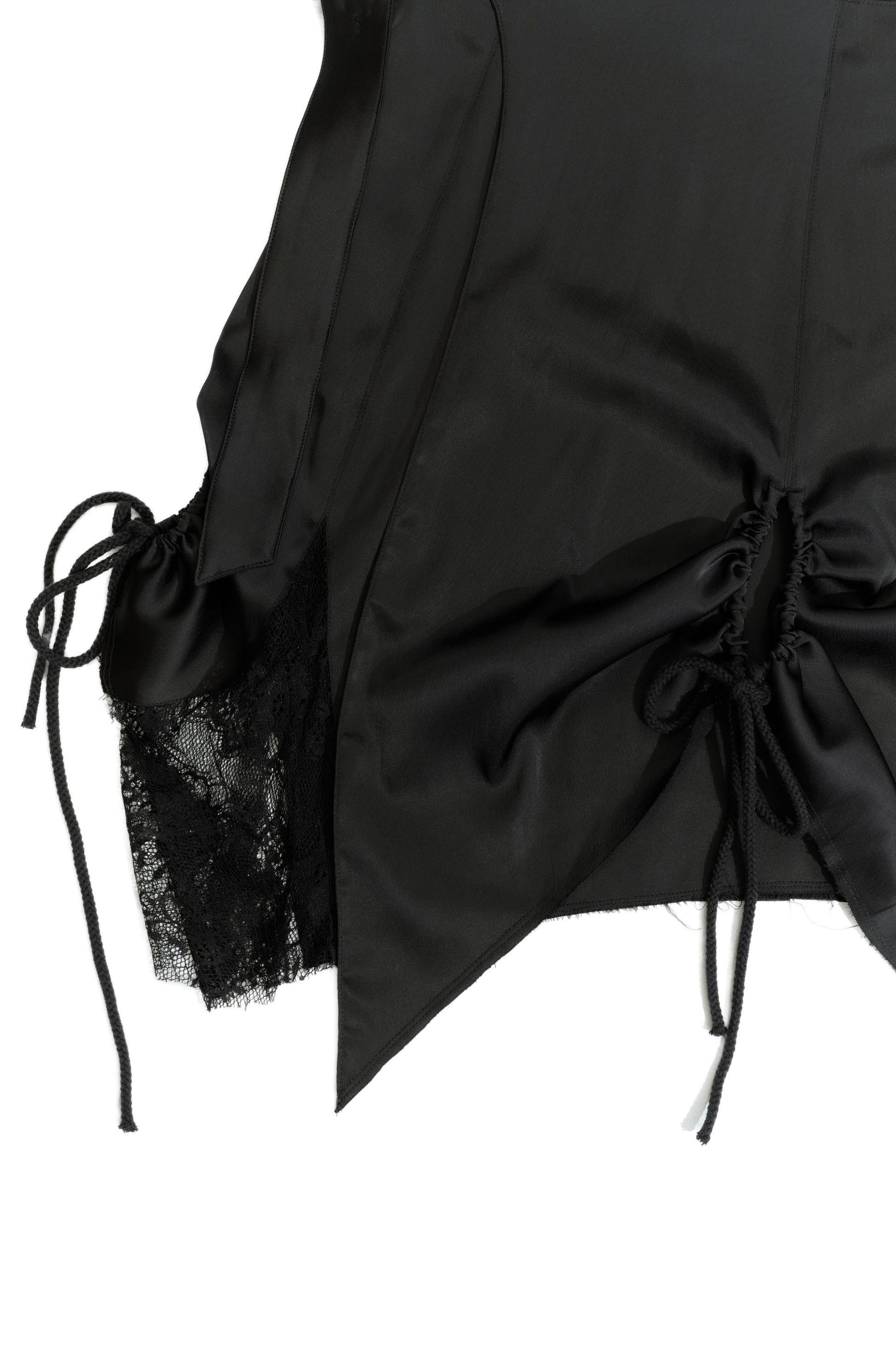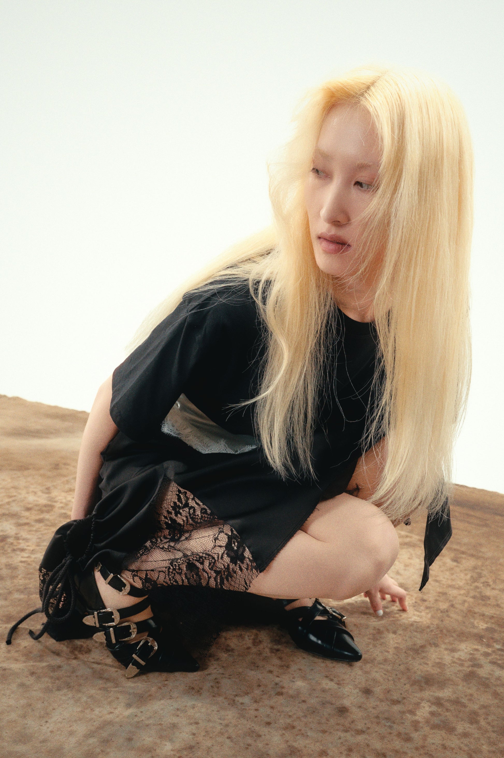 以夏季灰燼後的微光為主題,選用微亮面涼感布料,搭配柔軟的線條與綁帶細節,象徵經歷炙熱洗禮後所留下的溫柔堅定。