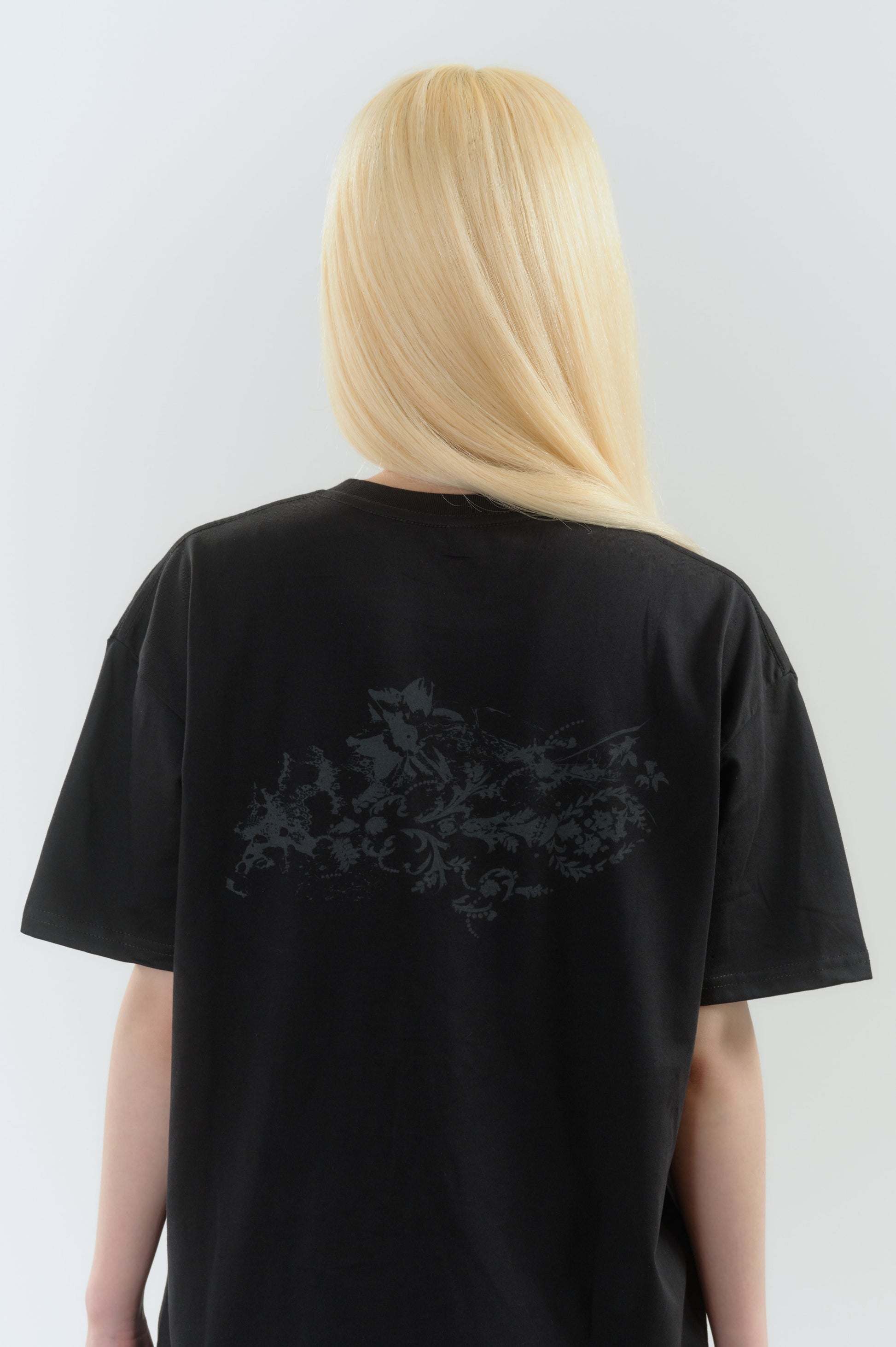前身為低調的絲網印刷圖案,背後則是大面積的花海圖像,如同灰燼中悄然盛開的記憶與情感,