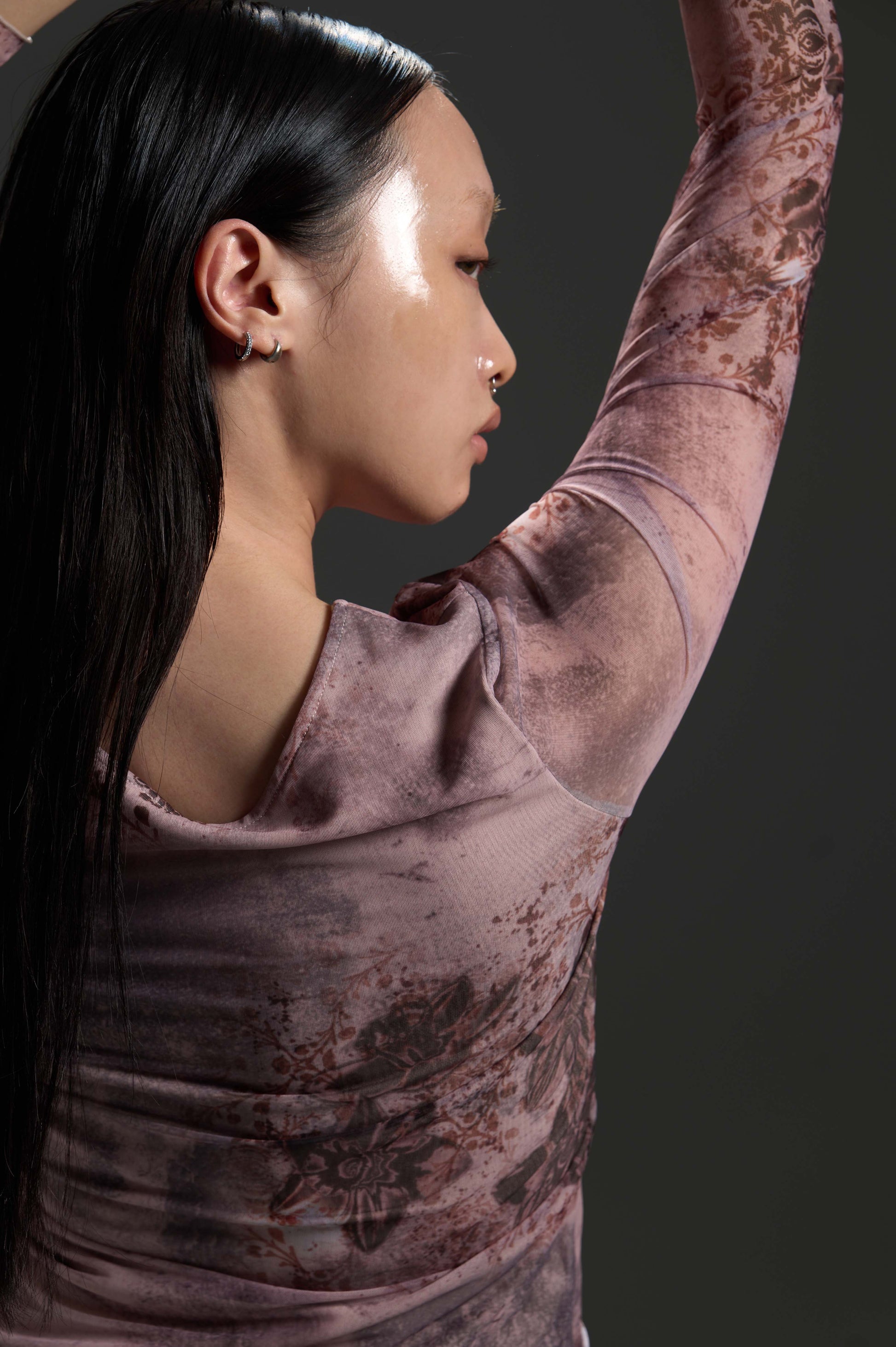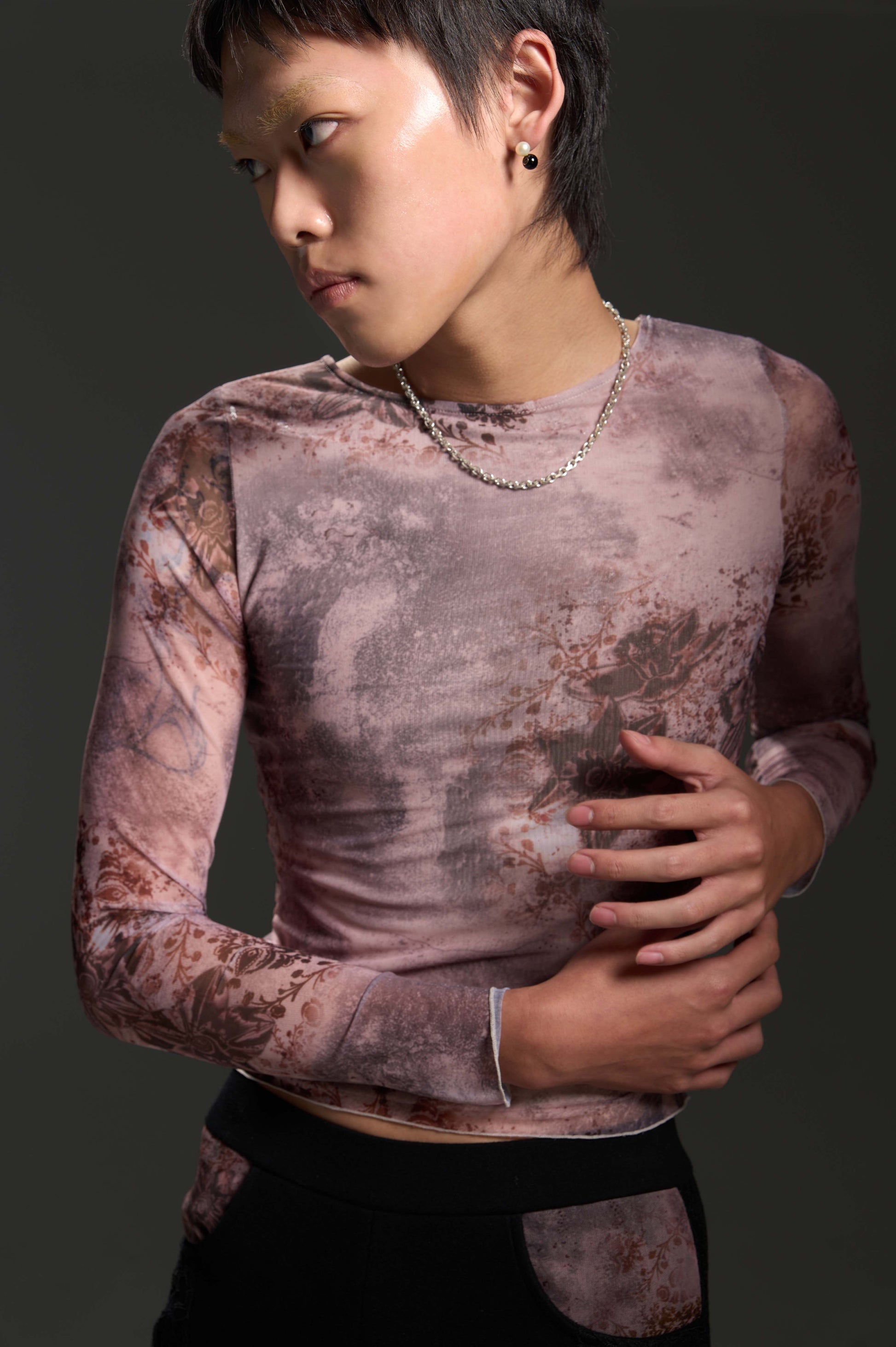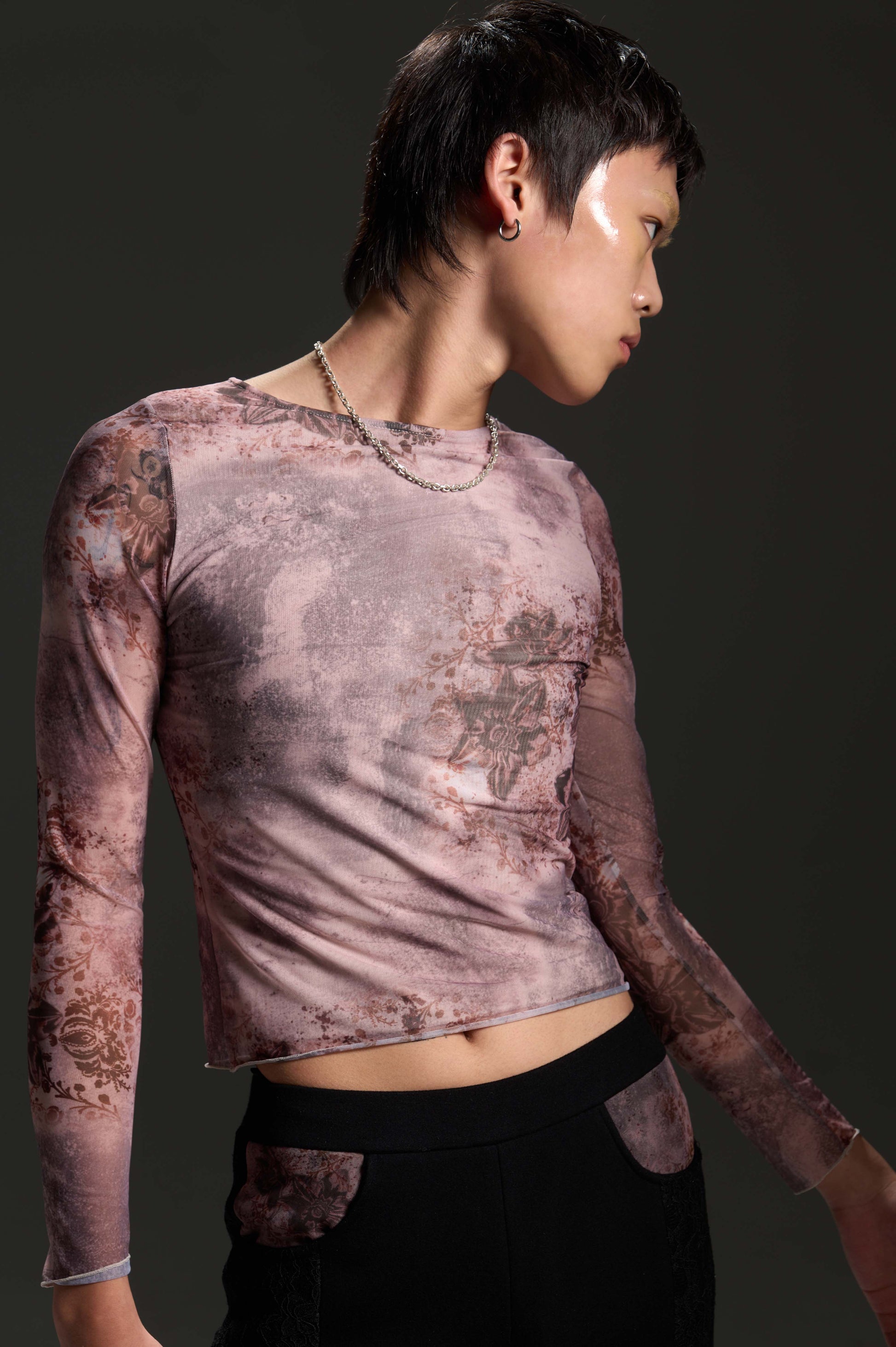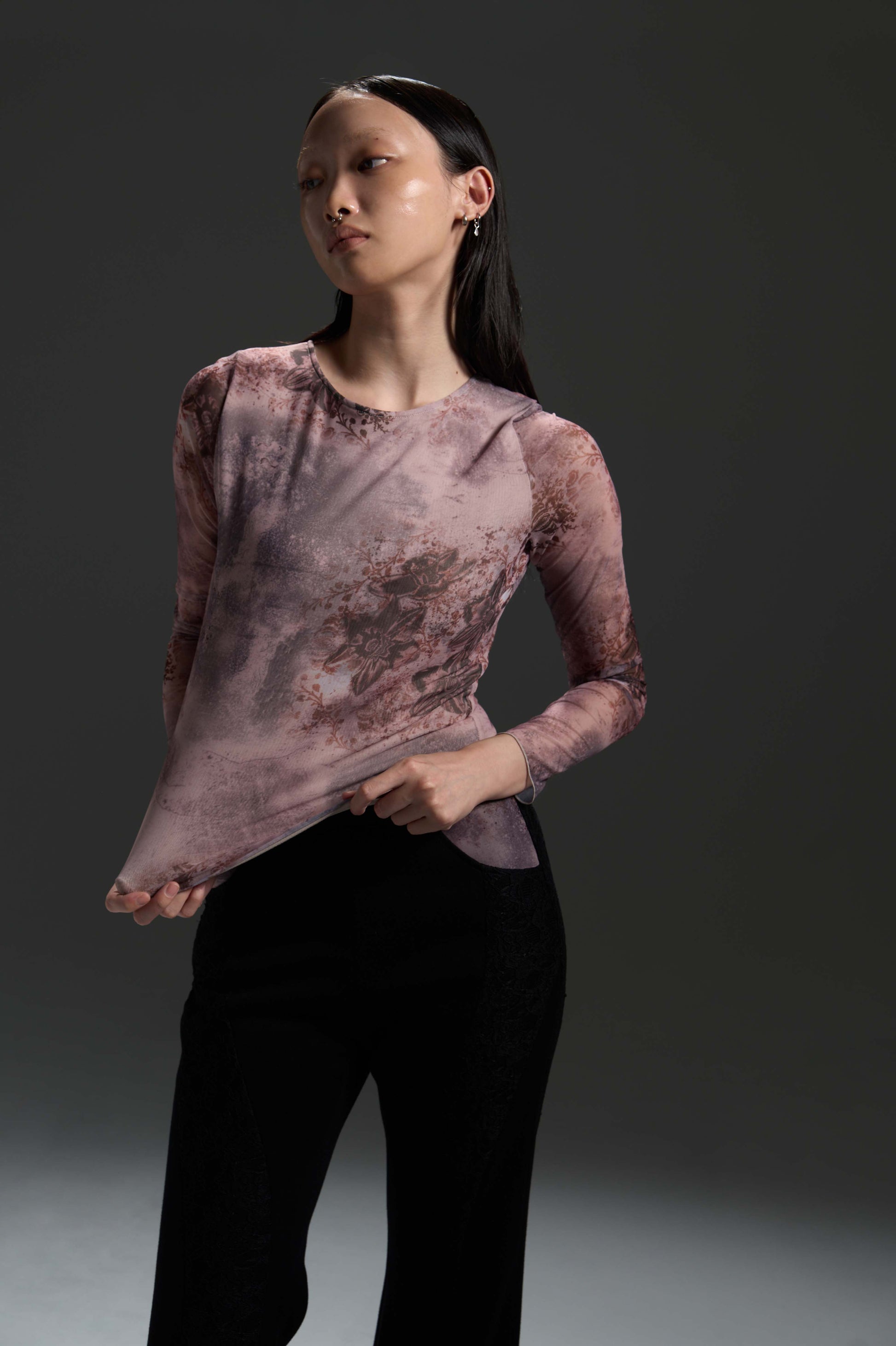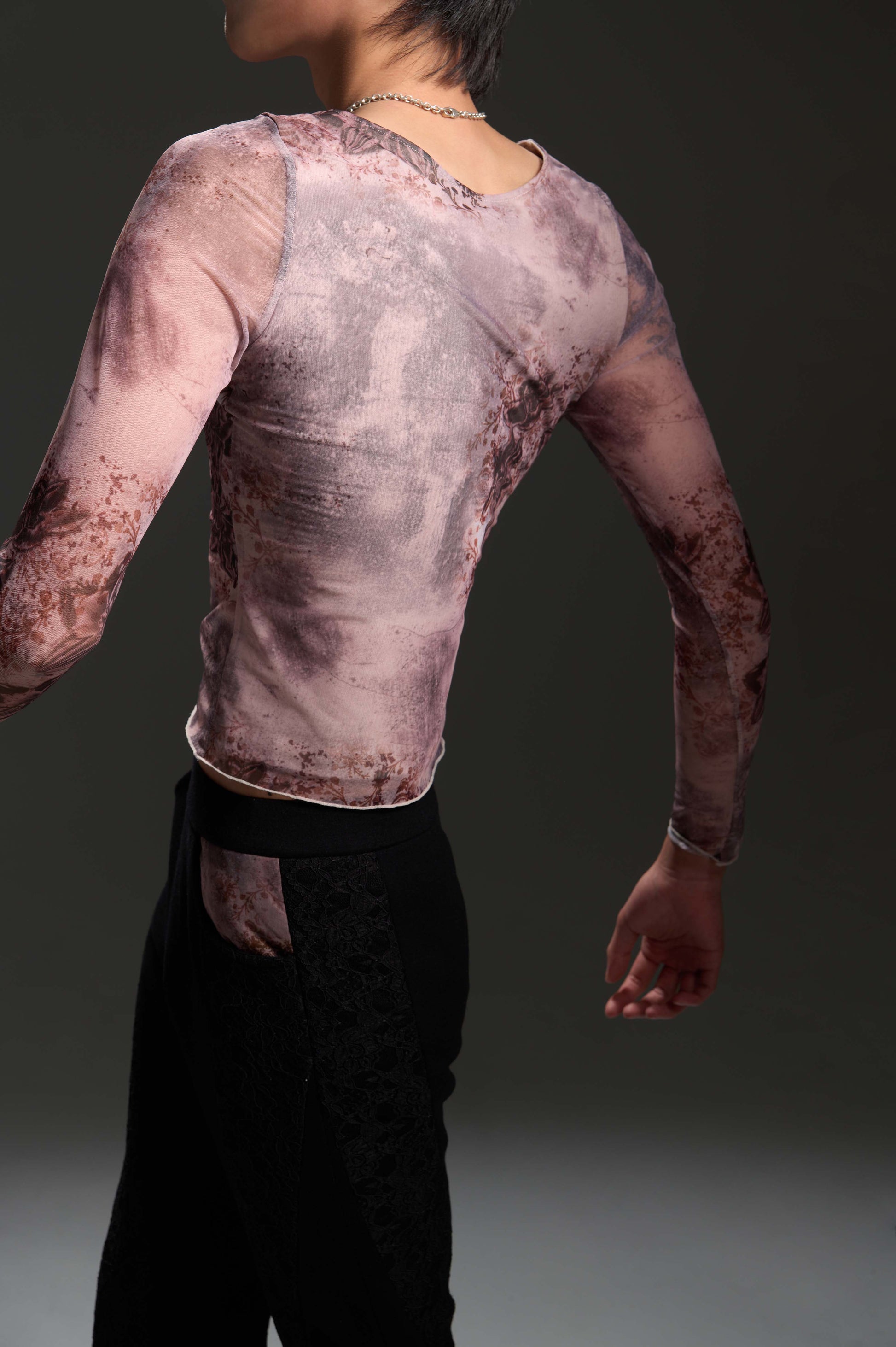 𝑳𝑳 𝒔𝒕𝒓𝒆𝒕𝒄𝒉 𝒍𝒐𝒏𝒈-𝒔𝒍𝒆𝒆𝒗𝒆 𝒕𝒐𝒑-高彈印花網布長袖上衣